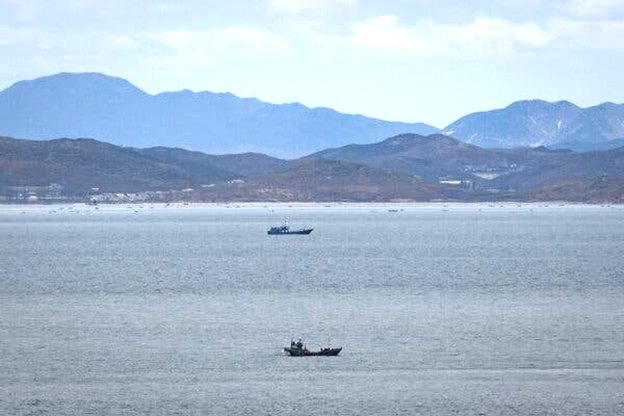 북한 보트에서 나온 빛줄기가 바다 위를 훑고 지나갔다.